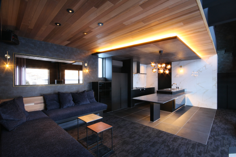 お施主様こだわりの様々な素材を散りばめた非日常的空間が完成しました。