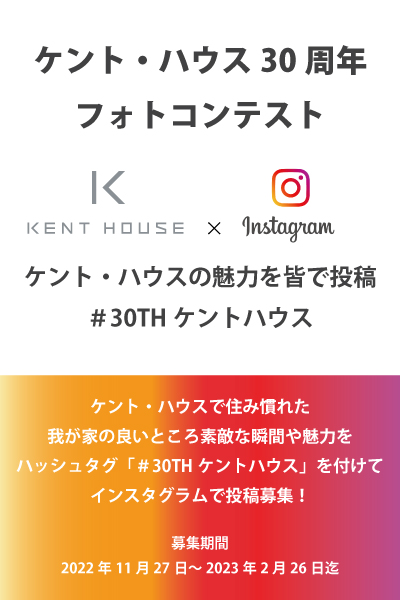 ケント・ハウスで住み慣れた我が家の心地よいところ、家族、自慢のもの映え写真を投稿をインスタグラムで募集します。