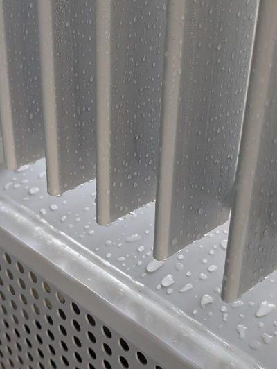 夏季の湿った空気はラジエータ表面で結露し、自然な除湿効果が得られます。結露水は付属のドレンパンを通じて排水されます。風の吹き出しがなく、無音で無振動のため、静かな空間が保たれます。