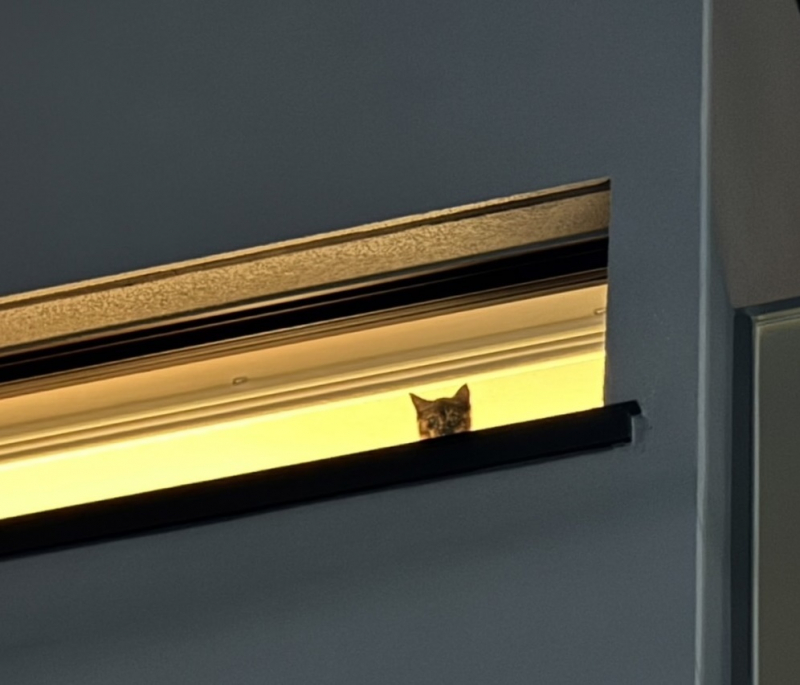 室内に猫さんがいて、キャットウォークがあります。