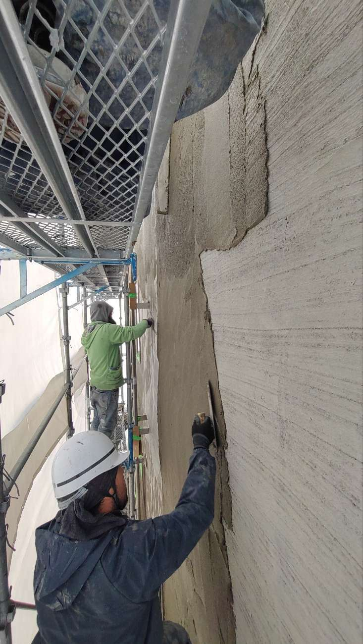 弊社の外壁材として使用する《既調合軽量セメントモルタル》は、