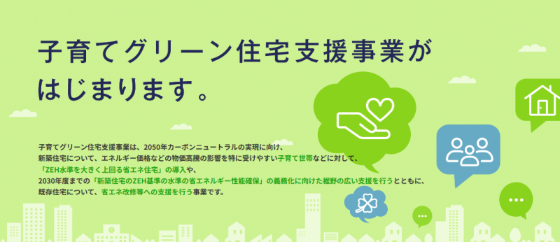 上記の子育てグリーン住宅支援事業は2050年のカーボンニュートラルの実現に向けた支援事業です。