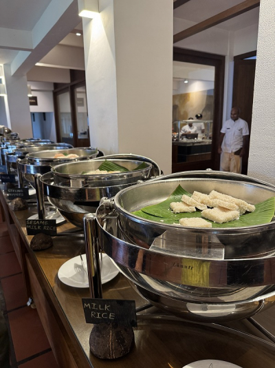 コロンボ市内で訪れた「ギャラリーカフェ」は、ジェフリー・バワが設計した建物を利用したレストラン。ここで味わったカレーは、スパイスの豊かな香りとともに、じんわりと広がる豚肉の旨みが絶妙な逸品でした。