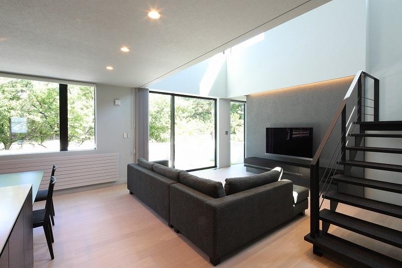 リビングは、ミストグレーを基調とした吹き抜け空間。