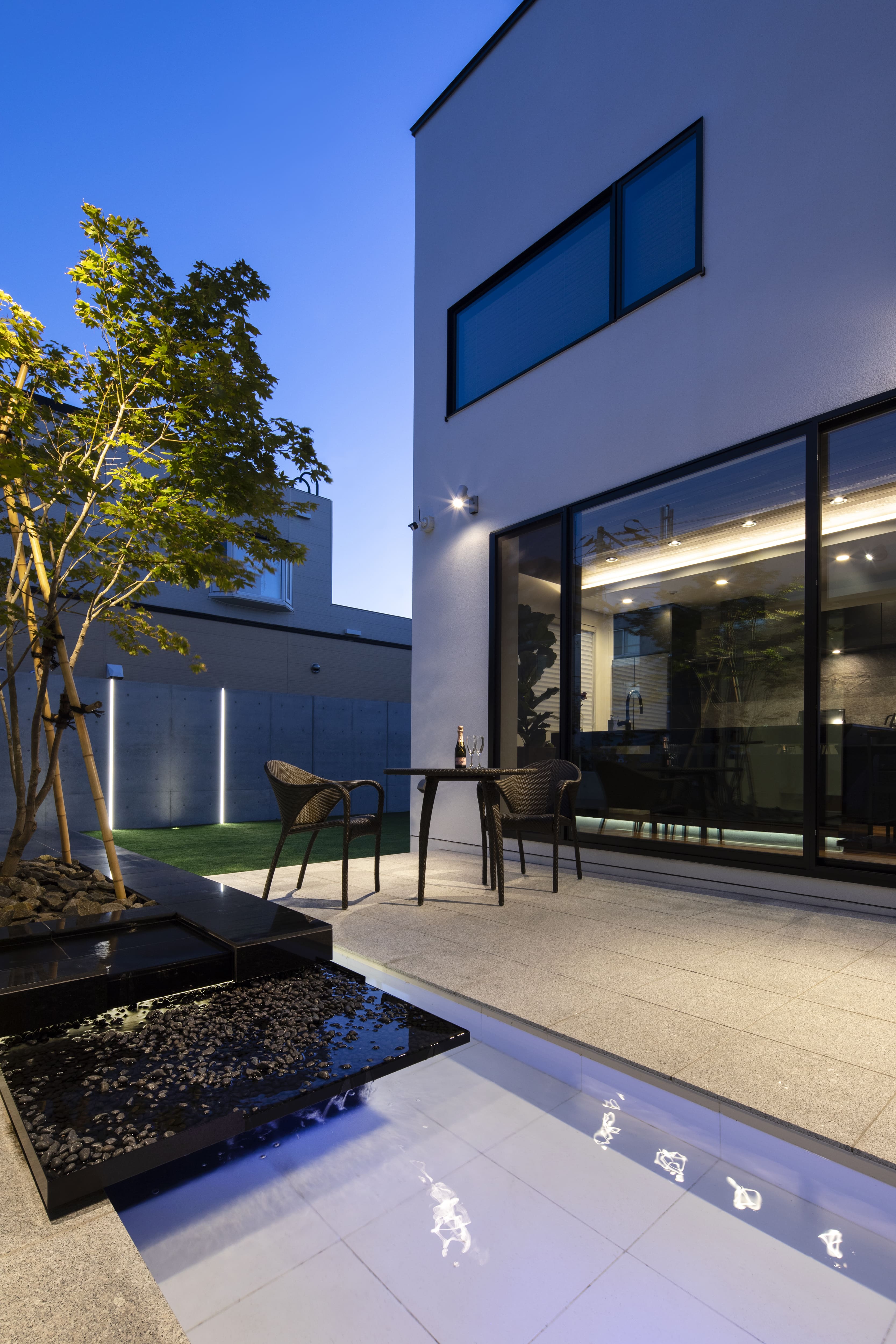 今回は、ライティングで美しく浮かび上がる夜のエクステリアをご紹介します。