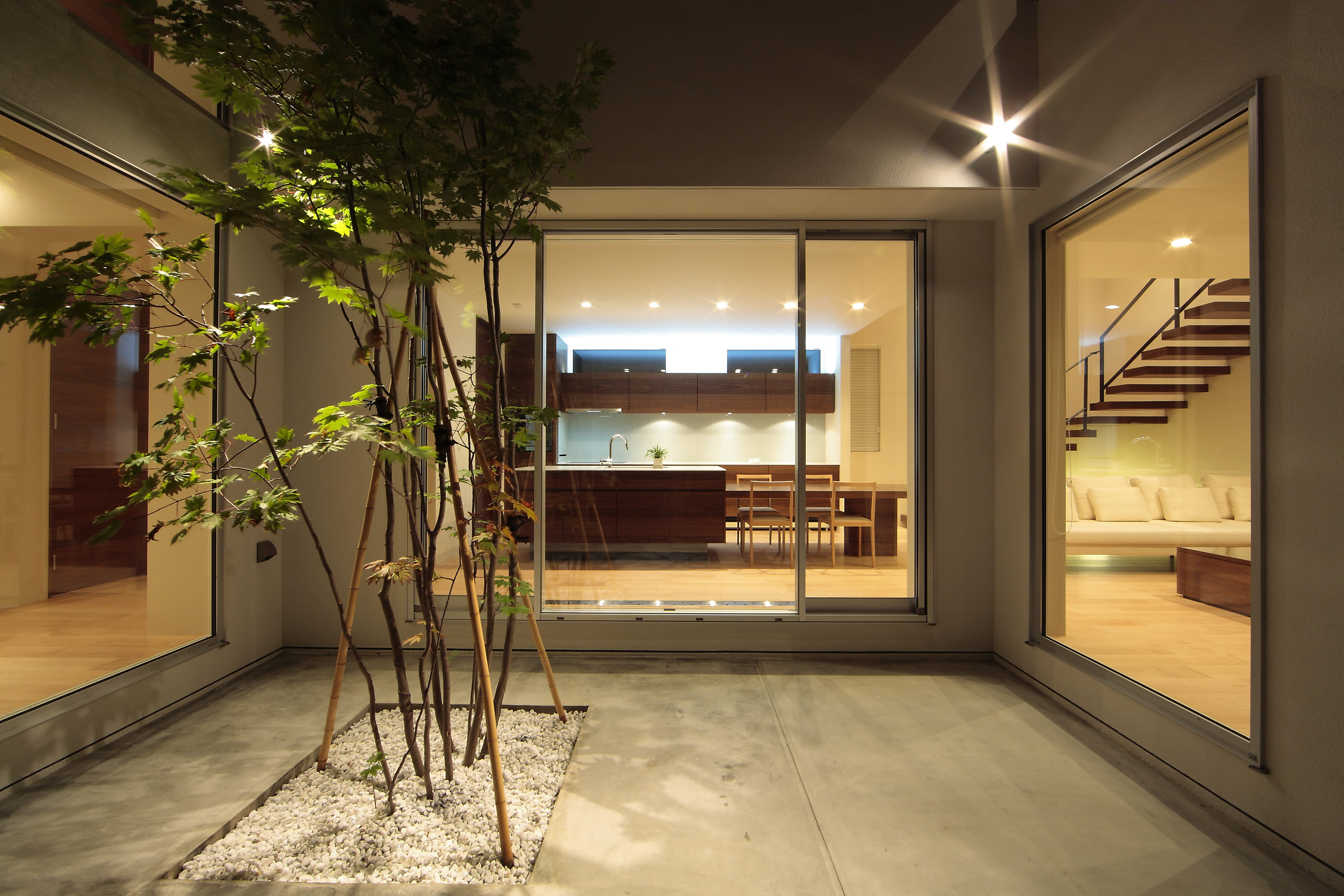 塀で囲われた中庭は周囲に影響されることがない自由な空間。