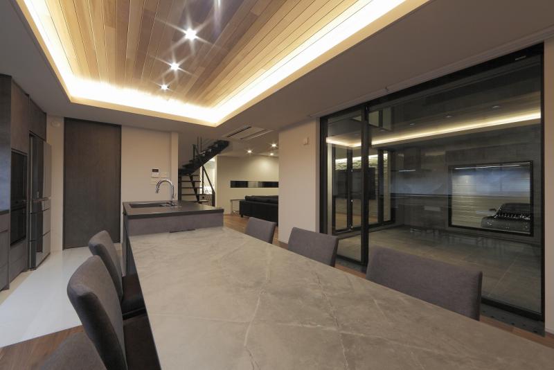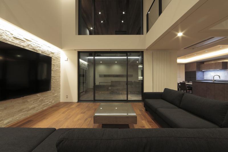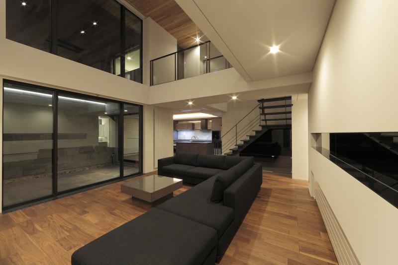 リビングは、プライベートな中庭に向けて大きく開いています。