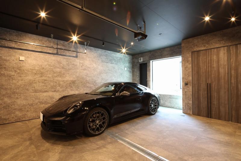広々としたインナーガレージは、仕上げの質感にお施主様のこだわりが込められ、